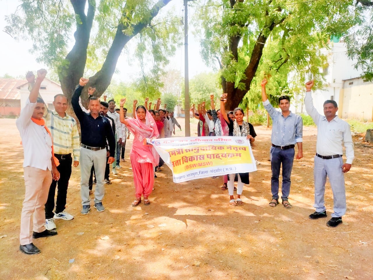 भानपुरा- मुख्यमंत्री सामुदायिक नेतृत्व क्षमता विकास पाठ्यक्रम कक्षा के दौरान मध्य प्रदेश शासन द्वारा चलाए जा रहे जल गंगा संवर्धन अभियान(30 मार्च से 30 जून) के अंतर्गत कक्षा में बी.एस. डब्लु व एम.एस. डब्लु. के छात्र छात्राओं द्वारा मेहंदी रचाकर जल को सरक्षित करने का संदेश दिया साथ ही सी.एम.राइस विद्यालय परिसर में लगभग दो दर्शक पुराना जर्जर पड़ा हेड पंप की साफ सफाई कर सोख्ता गड्ढे का निर्माण किया व हेड पंप के आसपास की साफ सफाई कर कचरे को इकट्ठा कर उसका निस्तारण किया गया ततपश्चात जल को बचाने हेतु सभी ने जल संरक्षण की शपथ ली।